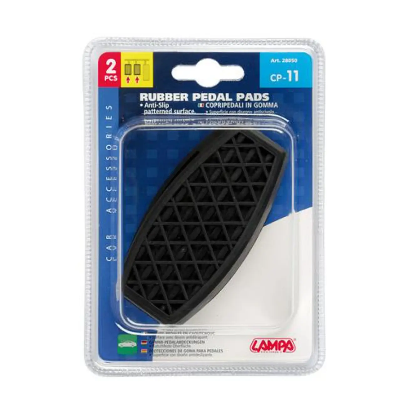 Αντιολισθητικά παπουτσάκια για τα πεντάλ του αυτοκινήτου σας από την εταιρία LAMPA, ιταλικής προέλευσης, για να αντικαταστήσετε τα ήδη υπάρχοντα σε περίπτωση φθοράς ή απώλειας. Κατασκευασμένα από καουτσούκ υψηλής ποιότητας με αντιολισθητικό πέλμα για να μη γλιστράει το πόδι σας κατά την οδήγηση. Η συσκευασία περιλαμβάνει παπουτσάκια για εφαρμογή στο φρένο και τον συμπλέκτη.
