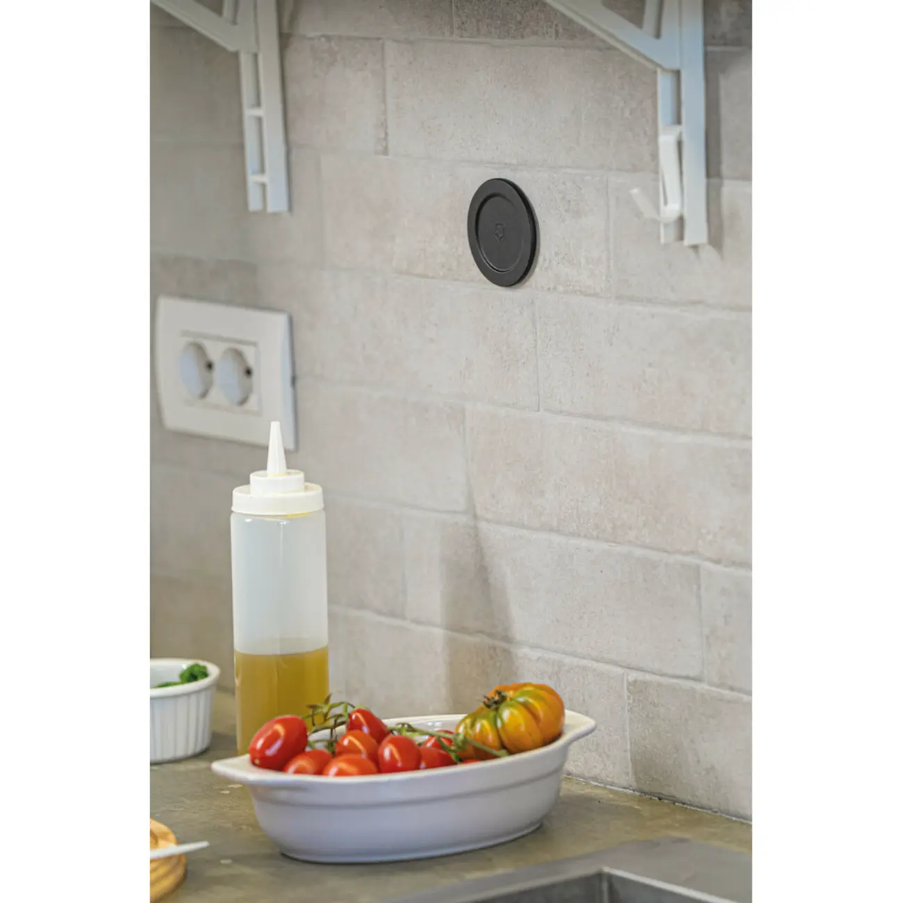 - Πλενόμενο, επαναχρησιμοποιούμενο nano gel αυτοκόλλητο στο κάτω μέρος της για τοποθέτηση σε όλες τις λείες και επίπεδες επιφάνειες (μη συμβατή με κυρτές ή πολύ πορώδεις επιφάνειες), όπως πάγκους, γραφείο, έπιπλα, κ.ο.κ.