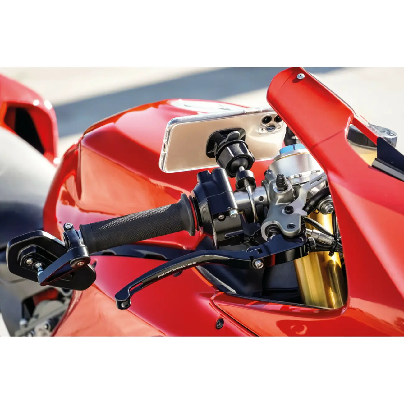 - Εξοπλισμένος με πατενταρισμένο σύστημα Duolock στο πίσω μέρος του για γρήγορη στερέωση ή αφαίρεση της από την βάση στήριξης. Το σύστημα Duolock προσφέρει την πιο ευέλικτη λύση και εφαρμόζει με μόλις δύο απλές κινήσεις: γυρίζετε και ασφαλίζετε την συσκευή επάνω στην βάση στήριξης.