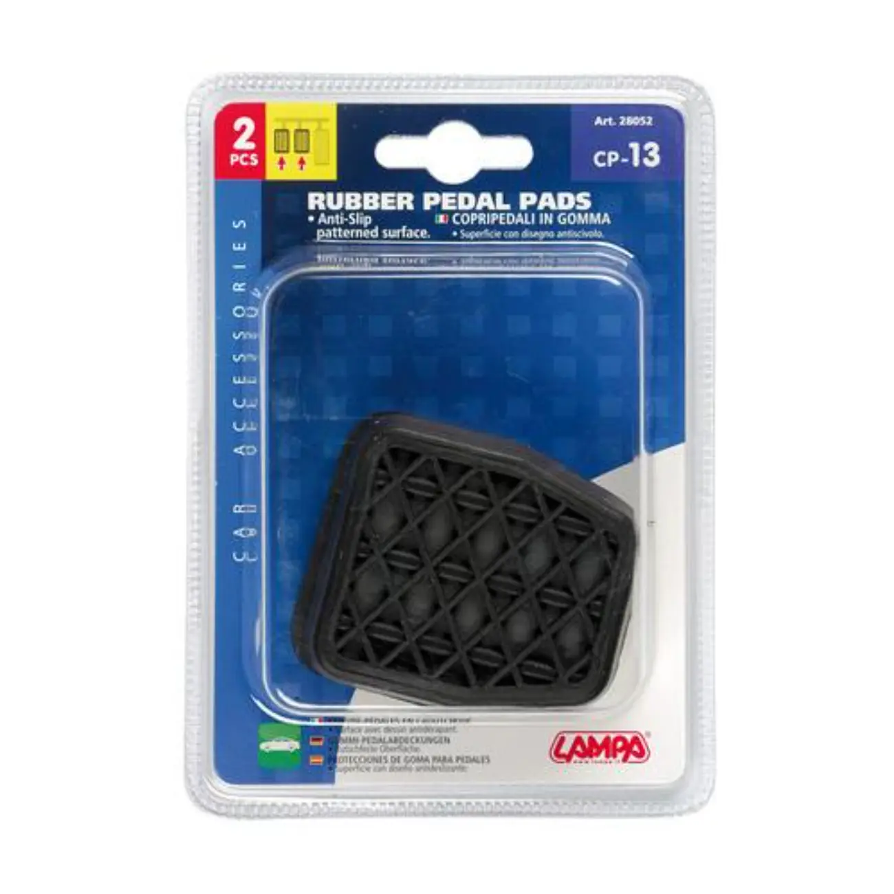 Αντιολισθητικά παπουτσάκια για τα πεντάλ του αυτοκινήτου σας από την εταιρία LAMPA, ιταλικής προέλευσης, για να αντικαταστήσετε τα ήδη υπάρχοντα σε περίπτωση φθοράς ή απώλειας. Κατασκευασμένα από καουτσούκ υψηλής ποιότητας με αντιολισθητικό πέλμα για να μη γλιστράει το πόδι σας κατά την οδήγηση. Η συσκευασία περιλαμβάνει παπουτσάκια για εφαρμογή στο φρένο και τον συμπλέκτη.