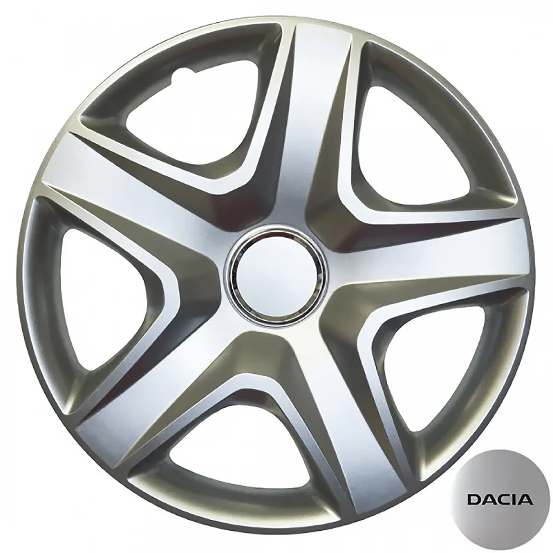 Κατασκευασμένα από υψηλής ποιότητας ενισχυμένο άθραυστο πλαστικό, απόλυτα ελαστικά, βαμμένα σε ασημί γυαλιστερό χρώμα, εξοπλισμένα με νίκελ δακτυλίδια για να στερεώσετε το σήμα της εκάστοτε μάρκας και ειδική εγκοπή για τη βαλβίδα του αέρα των ελαστικών του οχήματος.
