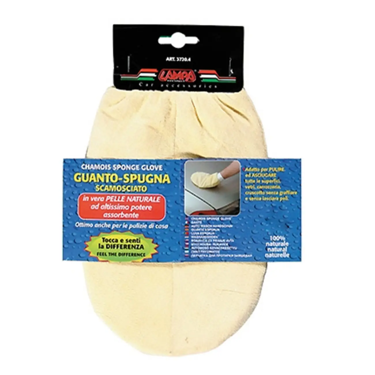 Γάντι χειρός κατασκευασμένο από γνήσιο δέρμα προβάτου chamois (πετσί), ιταλικής προέλευσης από την εταιρία Lampa. Κατάλληλο προϊόν για να στεγνώνει βρεγμένες επιφάνειες αποτελεσματικά και χωρίς να αφήνει χνούδια. Ιδιαίτερα απορροφητικό!