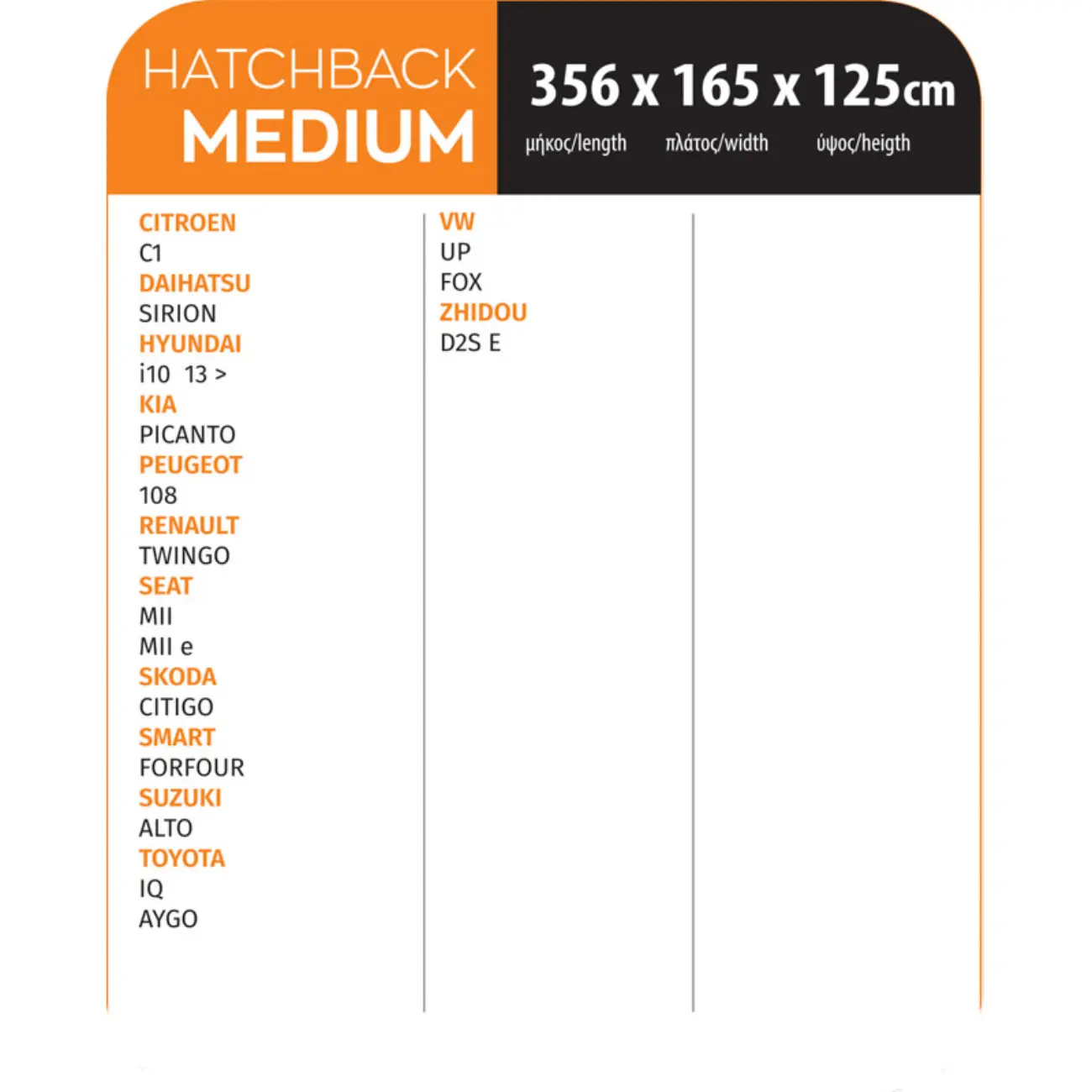 - Ειδική για HATCHBACK Medium