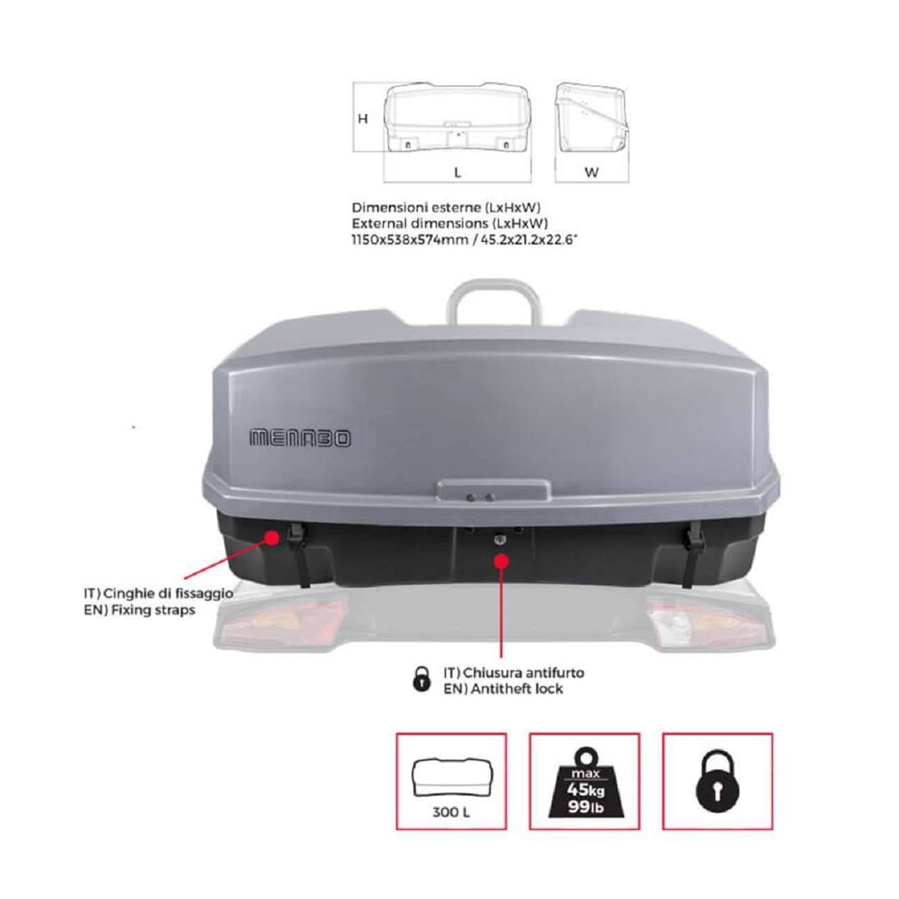– Περιλαμβάνει: Αντικλεπτικό σύστημα ασφαλείας (κλειδαριά), αντικλεπτικό πόμολο, σύστημα στήριξης, ιμάντες πρόσδεσης και οδηγίες χρήσης.