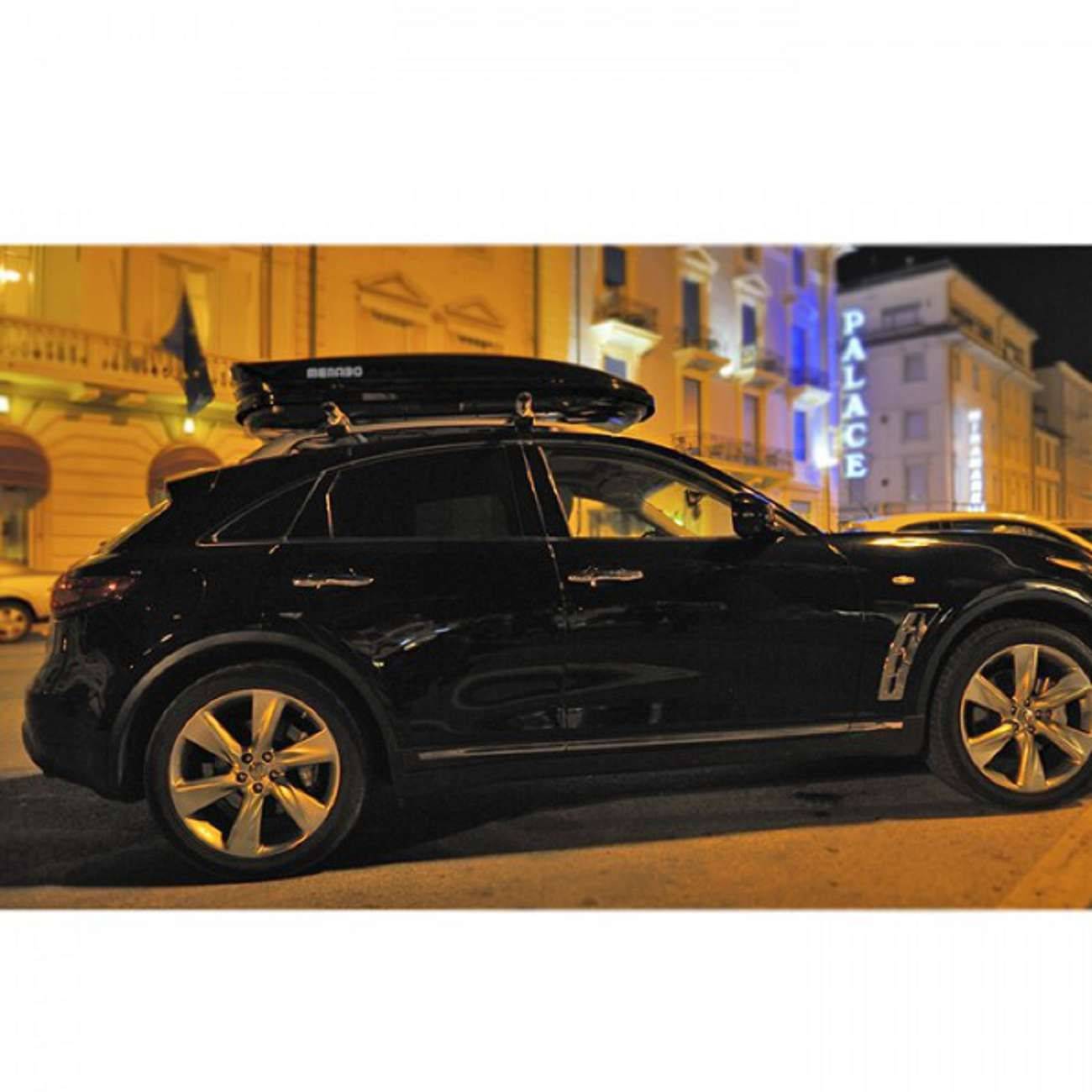 Μπαγκαζιέρα οροφής της σειράς MANIA από την εταιρία MENABO, 100% ιταλικής προέλευσης και κατασκευής από υψηλής ποιότητας πλαστικό σε μαύρο χρώμα με γυαλιστερή υφή και χωρητικότητα φορτίου 320 lt, ιδανική για τη δημιουργία επιπρόσθετου αποθηκευτικού χώρου κατά τη διάρκεια ταξιδίου ή και για μεταφορές εντός πόλης.