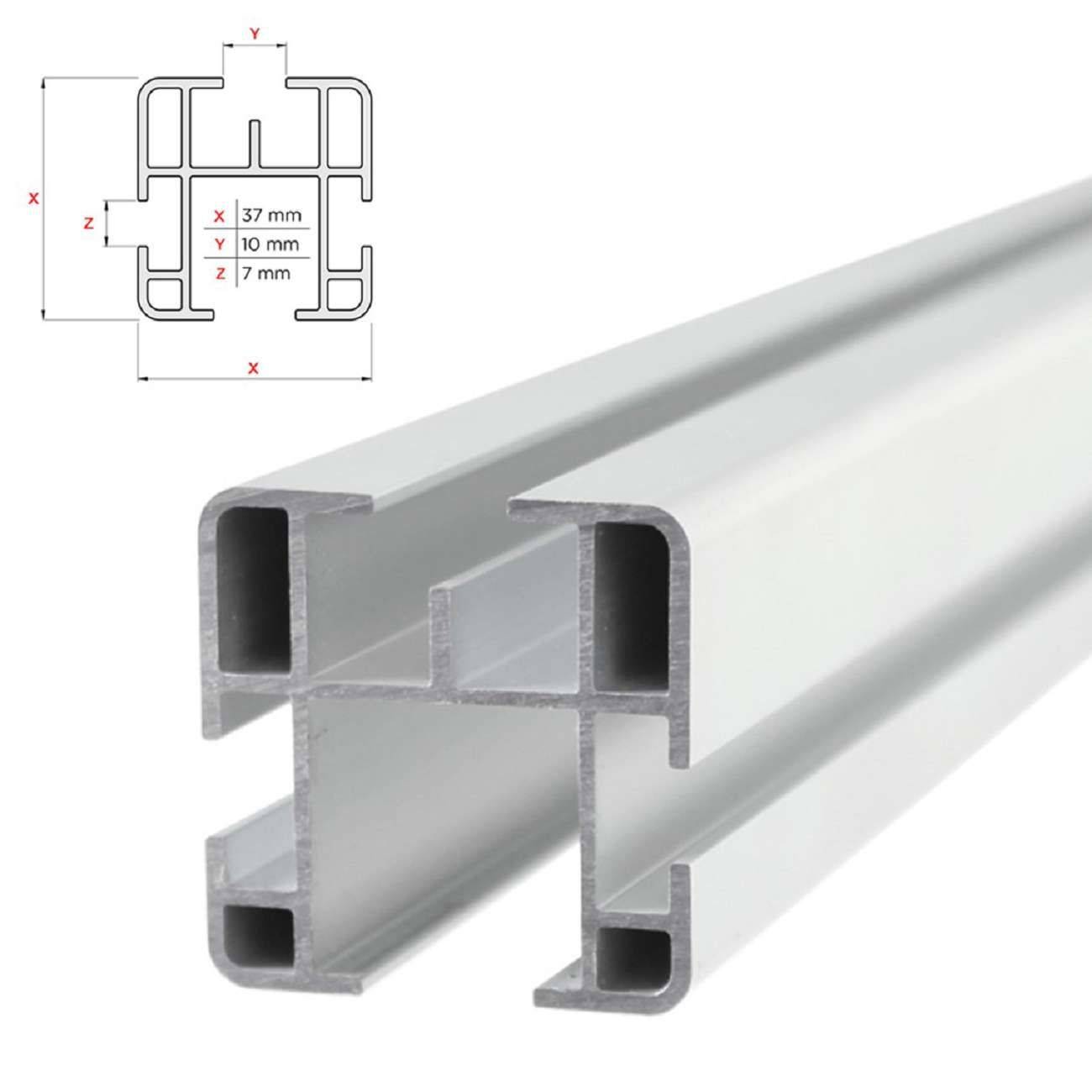 Μπάρες οροφής της επαγγελματικής σειράς PROFESSIONAL από την εταιρία MENABO, 100% ιταλικής προέλευσης και κατασκευής από υψηλής ποιότητας ελαφρύ, ανθεκτικό αλουμίνιο με 3 υποδοχές T-track – μία στο πάνω μέρος, η οποία καλύπτεται με ελαστικό αντιολισθητικό κάλυμμα προστασίας κατά μήκος της, συμβάλλοντας έτσι στην εξάλειψη του θορύβου και δύο στα πλάγια (δεξιά – αριστερά). Κατάλληλη για επαγγελματικά οχήματα (φορτηγάκια, van, κτλ.).