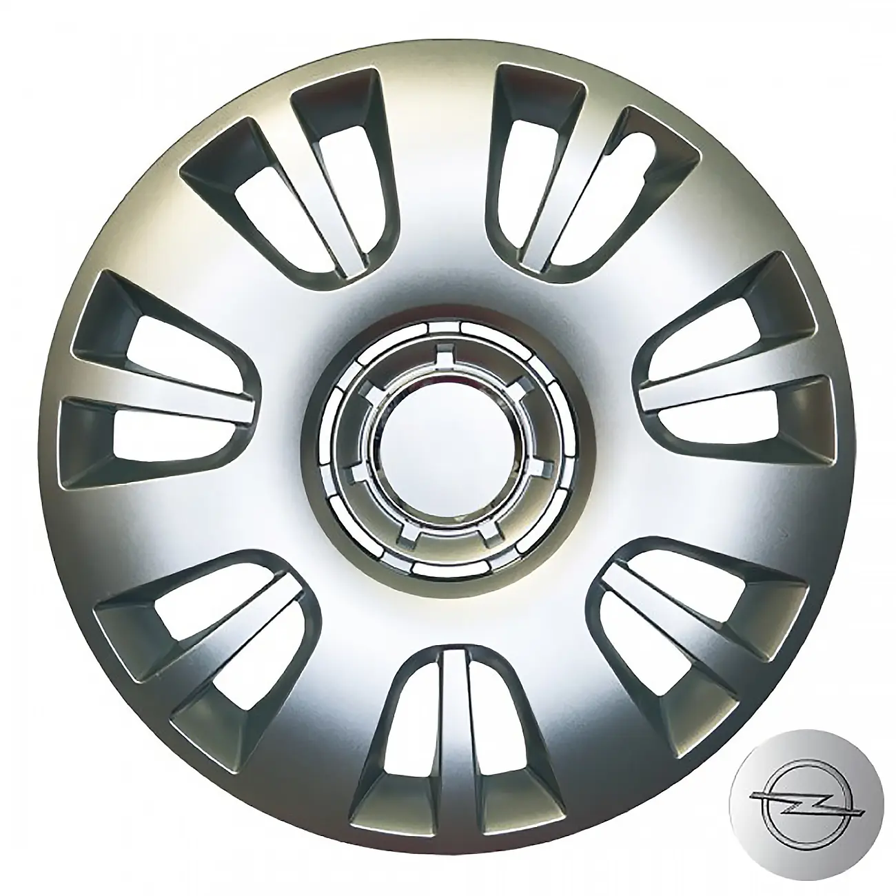 Κατασκευασμένα από υψηλής ποιότητας ενισχυμένο άθραυστο πλαστικό, απόλυτα ελαστικά, βαμμένα σε ασημί γυαλιστερό χρώμα, εξοπλισμένα με νίκελ δακτυλίδια για να στερεώσετε το σήμα της εκάστοτε μάρκας και ειδική εγκοπή για τη βαλβίδα του αέρα των ελαστικών του οχήματος.