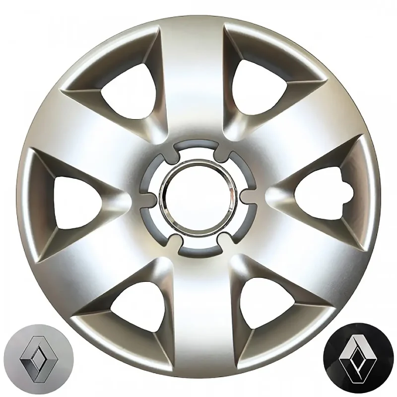 Κατασκευασμένα από υψηλής ποιότητας ενισχυμένο άθραυστο πλαστικό, απόλυτα ελαστικά, βαμμένα σε ασημί γυαλιστερό χρώμα, εξοπλισμένα με νίκελ δακτυλίδια για να στερεώσετε το σήμα της εκάστοτε μάρκας και ειδική εγκοπή για τη βαλβίδα του αέρα των ελαστικών του οχήματος.