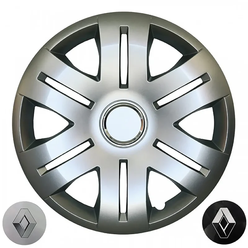 Κατασκευασμένα από υψηλής ποιότητας ενισχυμένο άθραυστο πλαστικό, απόλυτα ελαστικά, βαμμένα σε ασημί γυαλιστερό χρώμα, εξοπλισμένα με νίκελ δακτυλίδια για να στερεώσετε το σήμα της εκάστοτε μάρκας και ειδική εγκοπή για τη βαλβίδα του αέρα των ελαστικών του οχήματος.