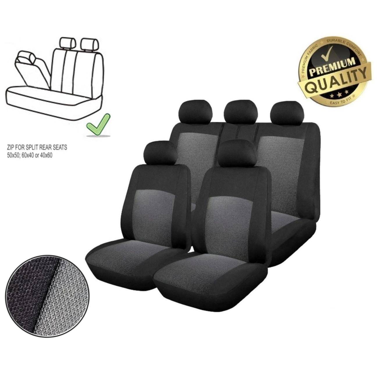 Σετ Καλύμματα Αυτοκινήτου με Φερμουάρ Πολυεστερικό 9 Τεμαχίων Μαύρο / Γκρι