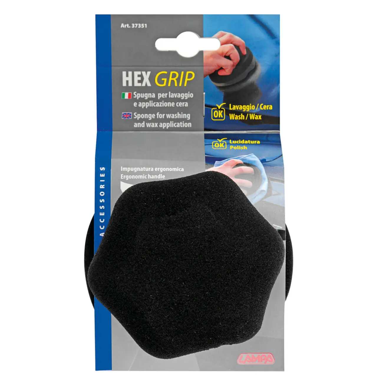 Σφουγγάρι χειρός πλυσίματος/γυαλίσματος με εργονομική λαβή HEX GRIP, από την εταιρεία LAMPA, ιταλικής προέλευσης.