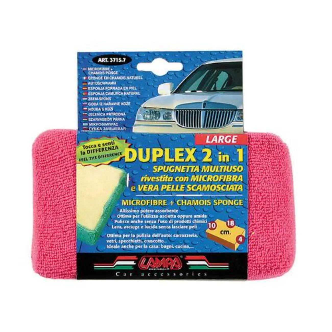 Σφουγγάρι πλυσίματος χειρός κατασκευασμένο από μικροίνες (microfibre) από την μία πλευρά και δέρμα σαμουά (πετσί) από την άλλη, ιταλική προέλευση της εταιρείας Lampa. Με τη χρήση του γαντιού από την πλευρά των μικροινών (microfibre) επιτυγχάνεται η αφαίρεση κεριού και προϊόντων συντήρησης αυτοκινήτου, καθώς και ξεσκονίζει επιφάνειες με ένα πέρασμα. Με τη χρήση του σφουγγαριού από τη πλευρά του δέρματος αίγαγρου (πετσί), προσφέρεται η δυνατότητα στεγνώματος των επιφανειών, καθώς το δέρμα αίγαγρου (πετσί) είναι ιδιαιτέρως απορροφητικό. Η απαλή σύνθεση και των 2 όψεων του σφουγγαριού δίνει τη δυνατότητα να κάνετε την καλύτερη επιλογή όσον αφορά το καθάρισμα, το στέγνωμα, το ξεσκόνισμα και το πλύσιμο των επιφανειών του αμαξώματος. Δεν αφήνει χνούδια και είναι εκτός θέματος.