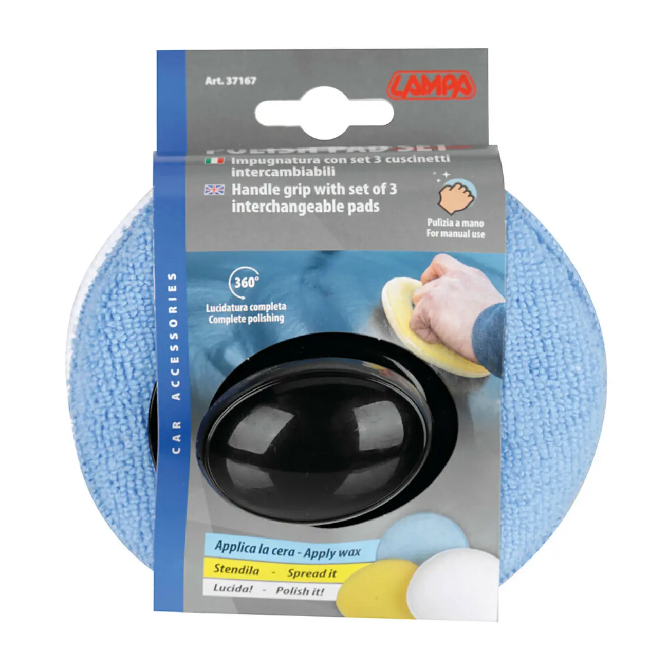 Σφουγγάρια γυαλίσματος 130mm με λαβή χειρός για 3 χρήσεις εφαρμογής αλοιφών από την εταιρεία LAMPA, ιταλικής προέλευσης.