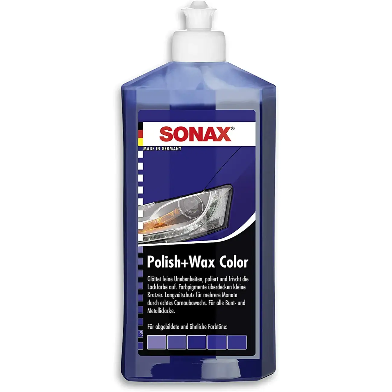Γυαλιστικό προϊόν με χρώμα από φυσικό κερί Carnauba για όλες τις απλές και μεταλλικές βαφές. Το χρώμα που περιέχει καλύπτει τις μικρές γρατσουνιές, δίνει αστραφτερή γυαλάδα και αναζωογονεί το χρώμα. Γυάλισμα, προστασία με κερί και αναζωογόνηση χρώματος με μία κίνηση. Προϊόν τεχνολογίας Nano Pro.
