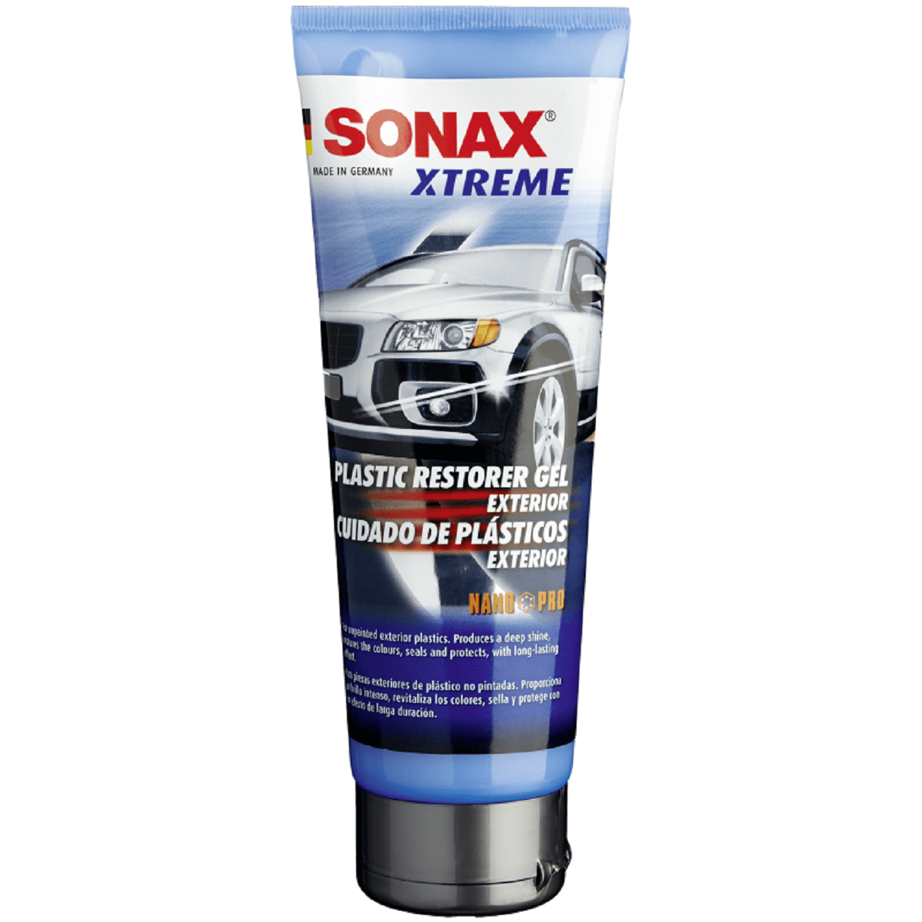Περιποιείται τα άβαφα πλαστικά τμήματα του εξωτερικού του αυτοκινήτου. Ανανεώνει το μαύρο χρώμα και προσφέρει ακόμη και στους φθαρμένους προφυλακτήρες και διακοσμητικές γραμμές νέα λάμψη. Σφραγίζει ρωγμές και συντηρεί τις επιφάνειες. Διαφανές και κατάλληλο για όλα τα χρώματα. Δεν περιέχει σιλικόνη. Προϊόν τεχνολογίας Nano Pro.