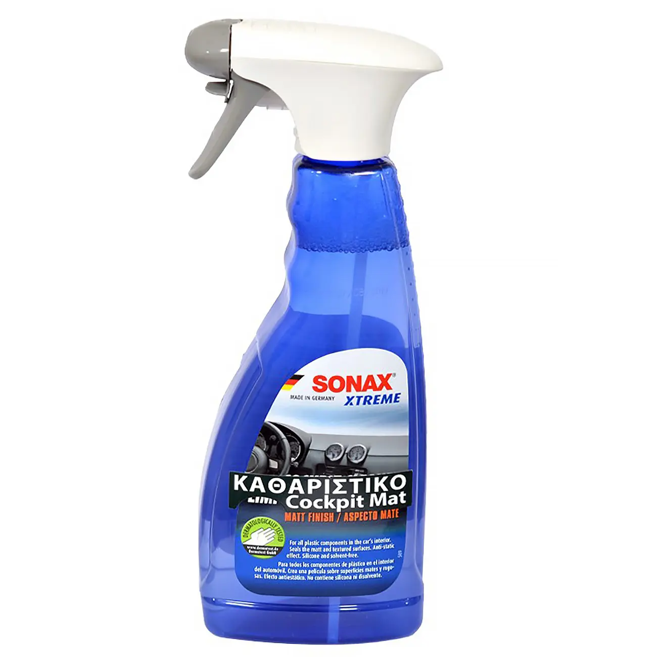 Καθαρίζει και περιποιείται όλα τα πλαστικά  τμήματα του εσωτερικού του αυτοκινήτου. Έχει αντιστατική δράση και έτσι αποτρέπει τη συγκέντρωση της σκόνης. Ανανεώνει και συντηρεί την ματ και σαγρέ υφή των επιφανειών (υφή soft-feeling). Αφήνει ένα δροσερό άρωμα στο χώρο. Δεν περιέχει σιλικόνη και διαλυτικά. Αποτρέπει την αντανάκλαση του ήλιου στο ταμπλό.