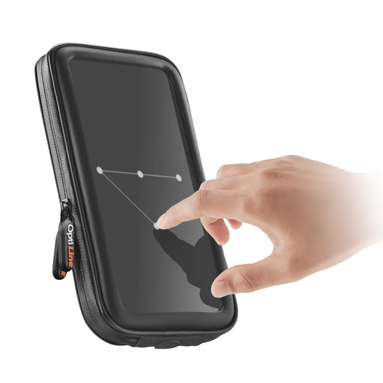 Θήκη κινητού Sized M από την σειρά Optiline της εταιρίας Lampa, ιταλικής προέλευσης, κατασκευασμένη από υψηλής ποιότητας υλικό σε μαύρο χρώμα, universal εφαρμογής, συμβατή με συσκευές, που έχουν μέγιστες διαστάσεις 70 x 145 mm (medium διάσταση). Το ειδικό σχήμα της θήκης ακολουθεί, όσο το δυνατόν, πιο πιστά το προφίλ της συσκευής και μειώνει τον όγκο για να διατηρεί το κινητό την λεπτότητά του. Η θήκη είναι εξοπλισμένη με εσωτερικές θήκες για αποθήκευση καρτών και εγγράφων και αποτελεί το δανικό προϊόν για να μεταφέρετε με ασφάλεια το smartphone σας με την μηχανή, την βέσπα, την μοτοσυκλέτα ή το ποδήλατό σας σε κάθε προορισμό. Κατάλληλη για να στηρίζει την συσκευή σας στην βάση στήριξης Optiline, που θα επιλέξετε, ώστε να μπορείτε να κάνετε χρήση του gps, να λαμβάνετε κλήσεις και να έχετε άμεση πρόσβαση στο κινητό σας κατά την διαδρομή! Απολαύστε το ταξίδι σας ή την καθημερινή διαδρομή μέσα στην πόλη με άνεση και εργονομία!