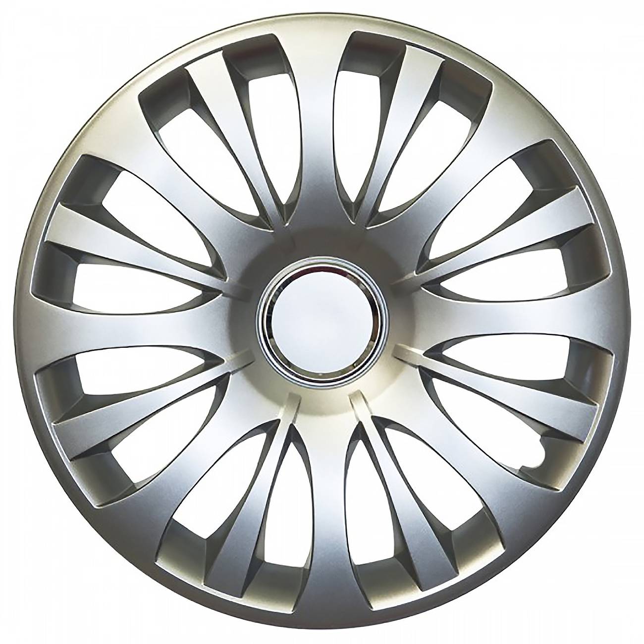 Κατασκευασμένα από υψηλής ποιότητας ενισχυμένο άθραυστο πλαστικό, απόλυτα ελαστικά, βαμμένα σε ασημί γυαλιστερό χρώμα, εξοπλισμένα με νίκελ δακτυλίδια για να στερεώσετε το σήμα της εκάστοτε μάρκας και ειδική εγκοπή για τη βαλβίδα του αέρα των ελαστικών του οχήματος.