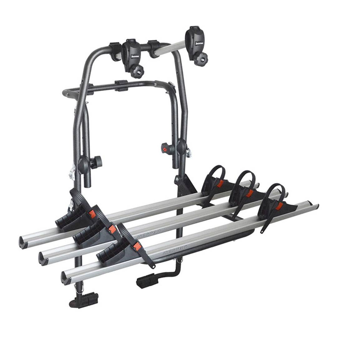 Στο πάνω μέρος έχει 2 ρυθμιζόμενα μπράτσα με ροδέλες για τέλεια προσαρμογή επάνω στο σκελετό των ποδηλάτων, συγκρατώντας τα σταθερά κατά τη μεταφορά ενώ παρέχεται και η δυνατότητα χρήσης πρόσθετης κλειδαριάς (δεν περιλαμβάνεται – πωλείται ξεχωριστά) στο κάθε ένα από αυτά. Στο κάτω μέρος οι ράγες (βέργες) συγκράτησης των ελαστικών είναι κατασκευασμένες από αλουμίνιο και η κάθε μία διαθέτει στα άκρα της 2 κυλιόμενους ιμάντες δέσης (δέστρες) για να συγκρατούν με απόλυτη ασφάλεια και σταθερότητα τους τροχούς των ποδηλάτων.