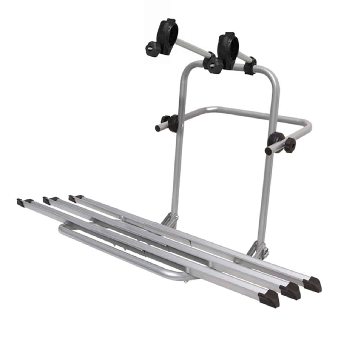 Στο πάνω μέρος έχει 2 ρυθμιζόμενα μπράτσα με ροδέλες για τέλεια προσαρμογή επάνω στο σκελετό των ποδηλάτων, συγκρατώντας τα σταθερά κατά τη μεταφορά ενώ παρέχεται και η δυνατότητα χρήσης πρόσθετης κλειδαριάς (δεν περιλαμβάνεται – πωλείται ξεχωριστά) στο κάθε ένα από αυτά. Στο κάτω μέρος οι ράγες (βέργες) συγκράτησης των ελαστικών διαθέτουν στα άκρα τους από 2 ιμάντες δέσης (λουριά) για να συγκρατούν με απόλυτη ασφάλεια και σταθερότητα τους τροχούς των ποδηλάτων.