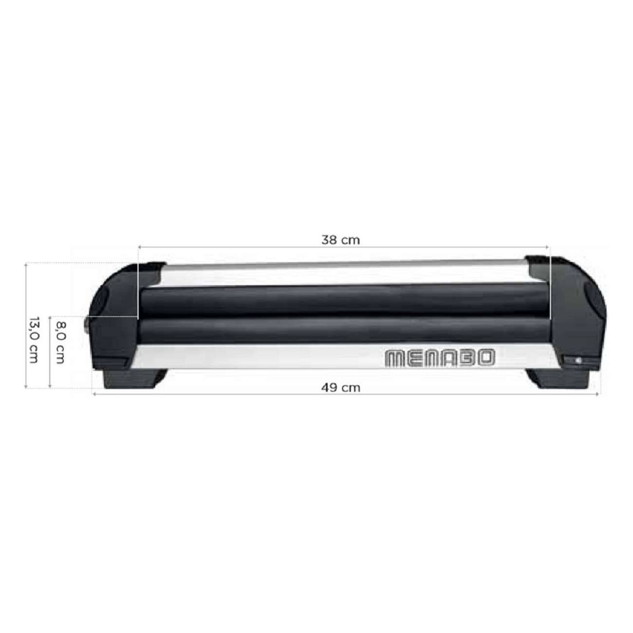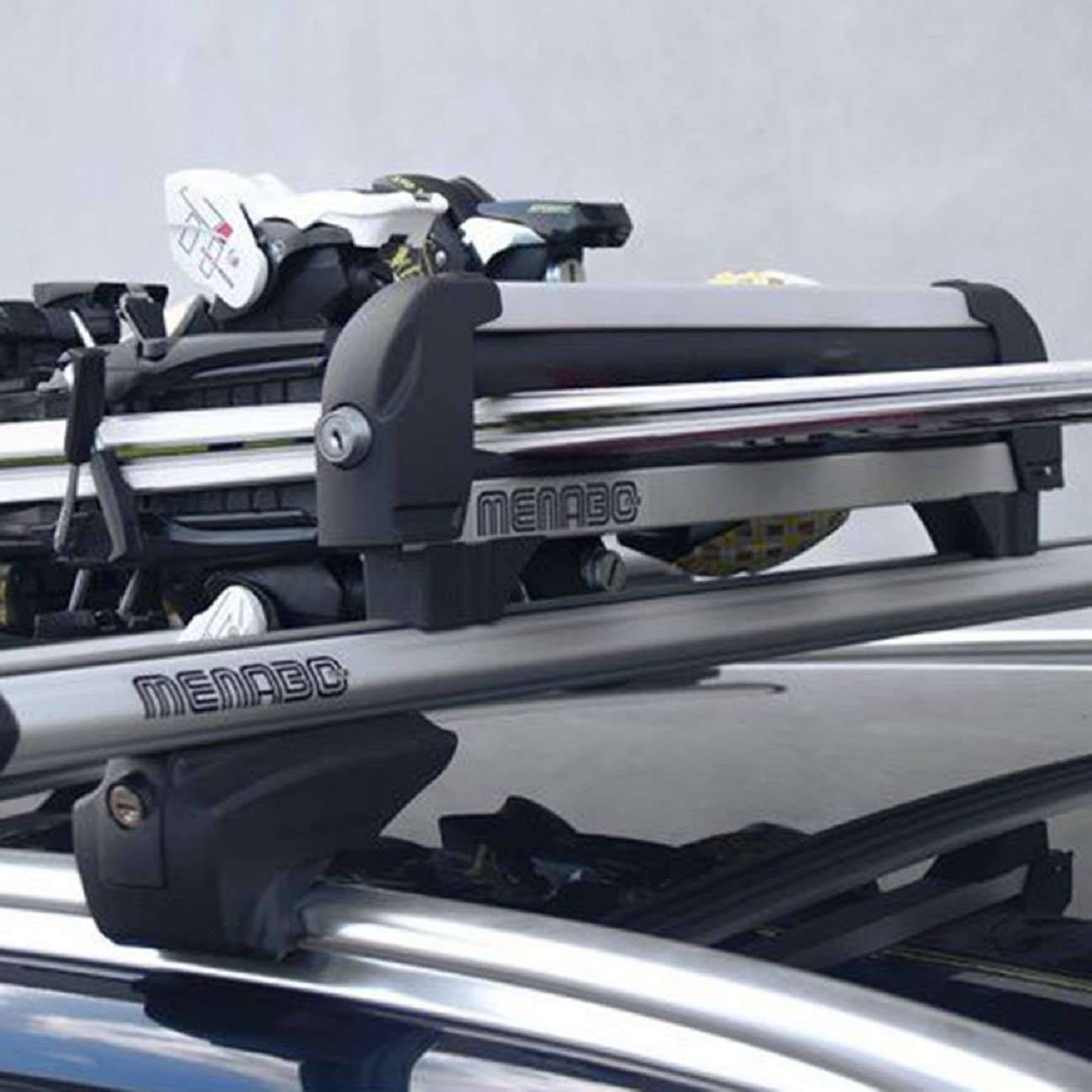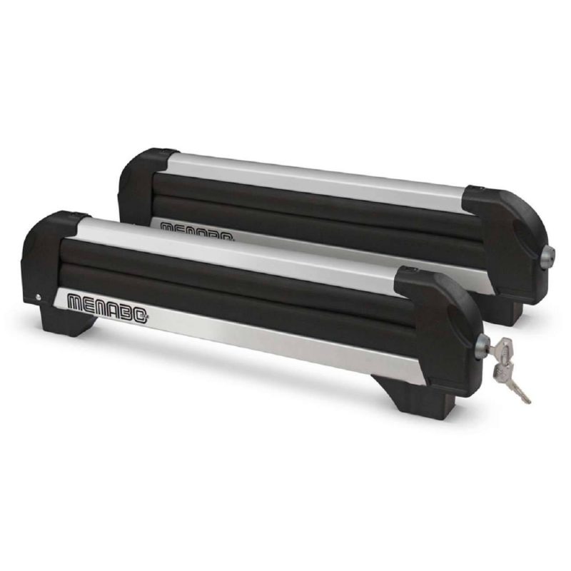 Η βάση οροφής ICEBERG της MENABO είναι ιταλικής κατασκευής, κατασκευασμένη από αλουμίνιο και ανθεκτικό πλαστικό σε μαύρο χρώμα, το οποίο αντέχει σε πολύ χαμηλές θερμοκρασίες, εξαιρετικά πρακτική και ασφαλής. Είναι σχεδιασμένη για να μεταφέρει έως και 4 ζευγάρια σκι (τύπου Nordic) ή 2 snowboard σανίδες, ανοίγει από τη μία πλευρά και διαθέτει διπλό αντικλεπτικό σύστημα ασφαλείας μαζί με 2 κλειδιά, προστατεύοντας τον εξοπλισμό σας και την ίδια τη βάση παράλληλα. Εύκολη και γρήγορη στη χρήση.
