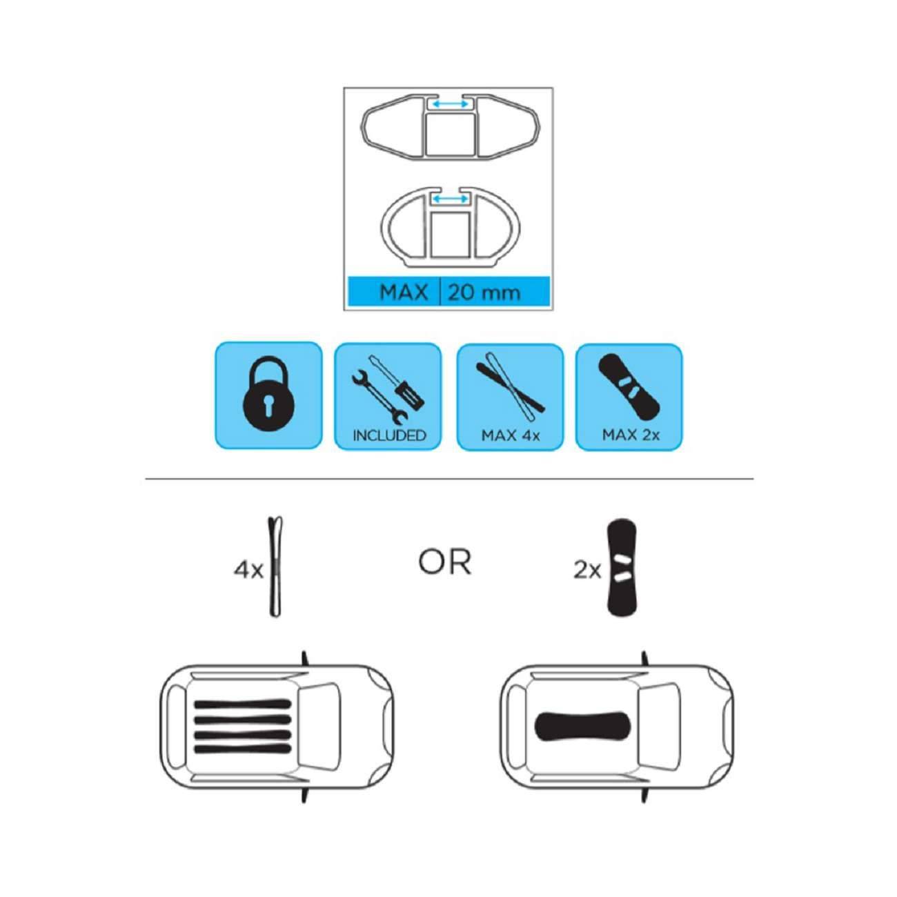 – Χωρητικότητα snowboard: 2 σανίδες.