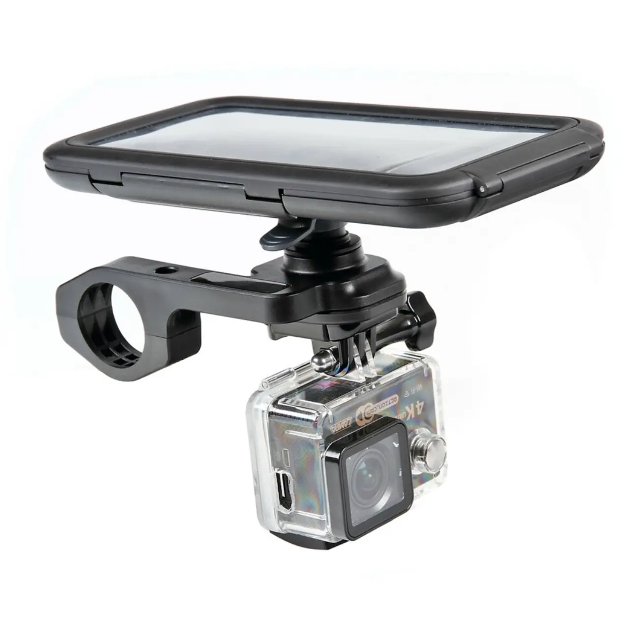 - Ειδικός αντάπτορας για action camera για συνδυαστική χρήση και μεταφορά κινητού και κάμερας.