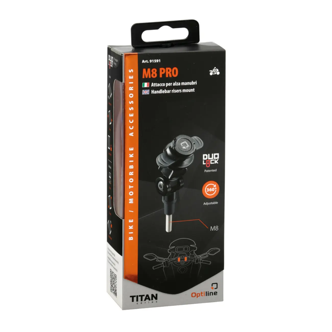 Βιδωτή βάση στήριξης κινητού M8 Pro από την σειρά Titan Optiline της εταιρίας Lampa, ιταλικής προέλευσης, κατασκευασμένη από υψηλής ποιότητας χυτοπρεσαριστό ατσάλι σε μαύρο χρώμα, η οποία μπορεί να συνδυαστεί με όλες τις θήκες ή αντάπτορες κινητού της σειράς Optiline. Η βάση στήριξης είναι universal εφαρμογής, διαθέτει ρυθμιζόμενο λαιμό για καλύτερη γωνία κλίσης και τοποθετείται στις βίδες στα καβαλέτα ή στους διακόπτες στο τιμόνι της μηχανής, αρκεί η διάμετρος του σπειρώματος των βιδών να είναι M8. Ιδανικό προϊόν για να μπορείτε να μεταφέρετε με ασφάλεια το smartphone σας με την μηχανή σας σε κάθε προορισμό. Κατάλληλη για να στηρίζει την συσκευή σας, ώστε να μπορείτε να κάνετε χρήση του gps, να λαμβάνετε κλήσεις και να έχετε άμεση πρόσβαση στο κινητό σας κατά την διαδρομή! Απολαύστε το ταξίδι σας ή την καθημερινή διαδρομή μέσα στην πόλη με άνεση και εργονομία!