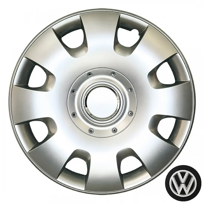 Κατασκευασμένα από υψηλής ποιότητας ενισχυμένο άθραυστο πλαστικό, απόλυτα ελαστικά, βαμμένα σε ασημί γυαλιστερό χρώμα, εξοπλισμένα με νίκελ δακτυλίδια για να στερεώσετε το σήμα της εκάστοτε μάρκας και ειδική εγκοπή για τη βαλβίδα του αέρα των ελαστικών του οχήματος.