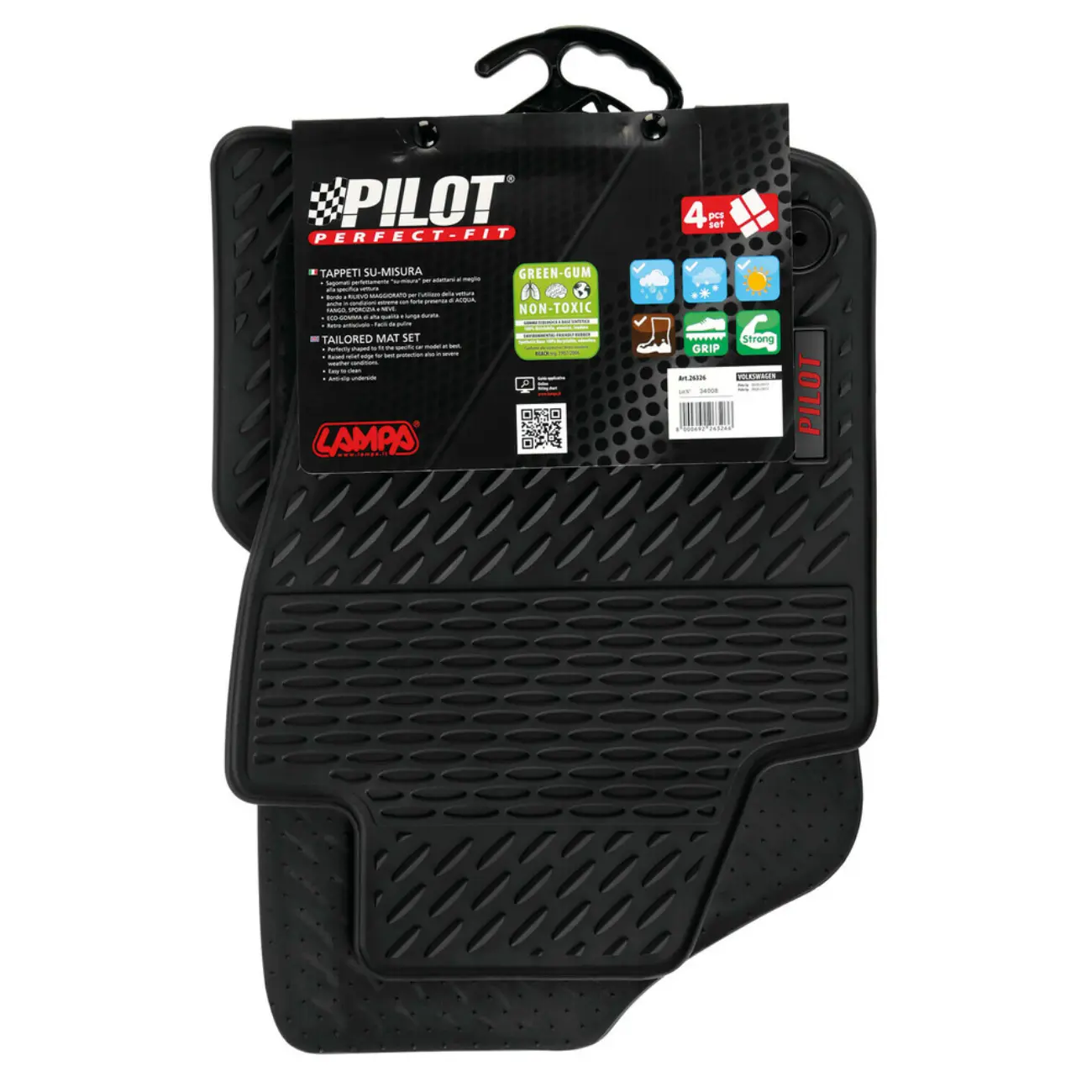 VW POLO 3D/5D 09/2009-09/2017 ΠΑΤΑΚΙΑ ΜΑΡΚΕ ΛΑΣΤΙΧΟ PILOT ECO GOMMA STYLE Β (ΜΕ ΚΟΥΜΠΩΜΑΤΑ) LAMPA – 4 ΤΕΜ.